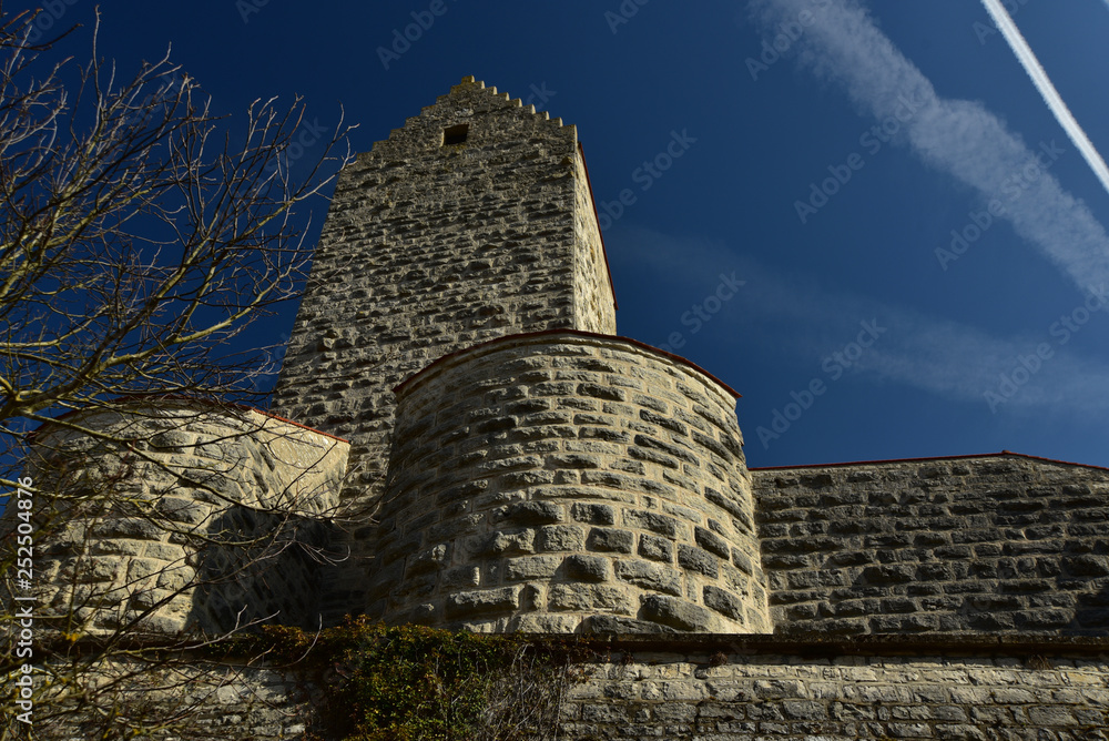 alte Burg aus dem Mittelalter vor blauem himmel