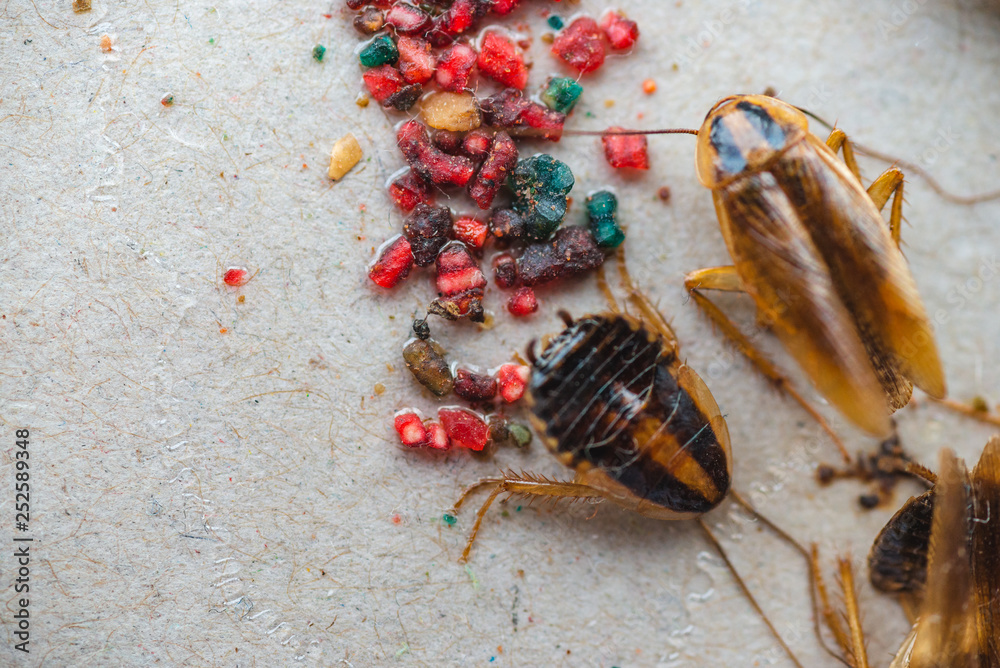 Macro photo of trapped cockroaches