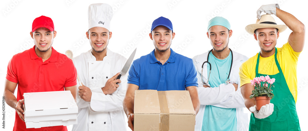 Berufe Beruf Ausbildung Lehre Berufswahl junger Mann Collage Arzt Doktor Koch Latino Freisteller freigestellt isoliert
