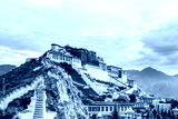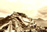 Sunrise scene of the Potala Palace from the former Lhasa West Gate in Lhasa, Tibet, China. It is now a museum and World Heritage Site.