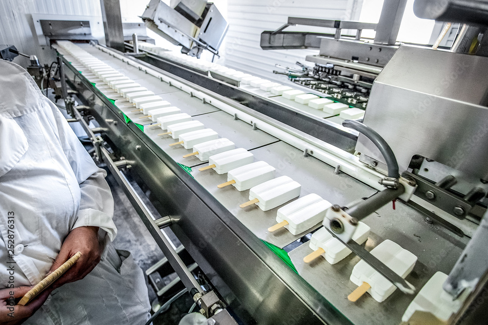 Production of ice-cream at factory
