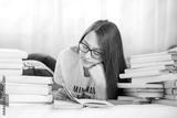 Beautiful teen girl studying in the room. Concept of education, hobby, study and world book day.