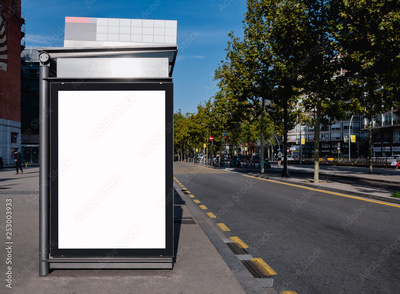 Mock up Billboard Banner template at Bus Shelter Media outdoor street Sign display