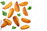Fried potato wedges isolated on white background. Fast food.