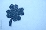 Decorative leaf of clover, trefoil, shamrock leaves on green background, close up. Happy St. Patrick's Day holiday symbol.