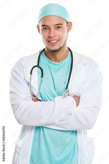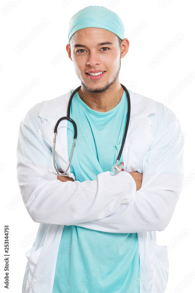 Junger Arzt Doktor Portrait Beruf Ausbildung Arztkittel Latino Freisteller freigestellt isoliert