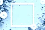 Beautiful spring nature background with lovely blossom, petal a on turquoise blue background , top view, frame. Springtime concept.