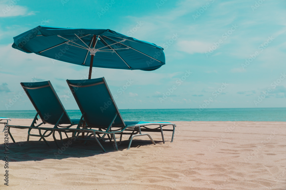 Two beach chairs on tropical vacation, vacation concept