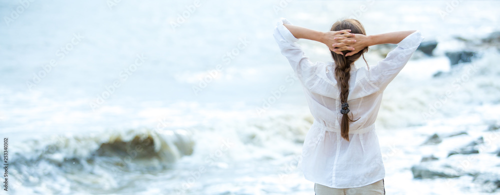 Young woman enjoying life on the ocean coast