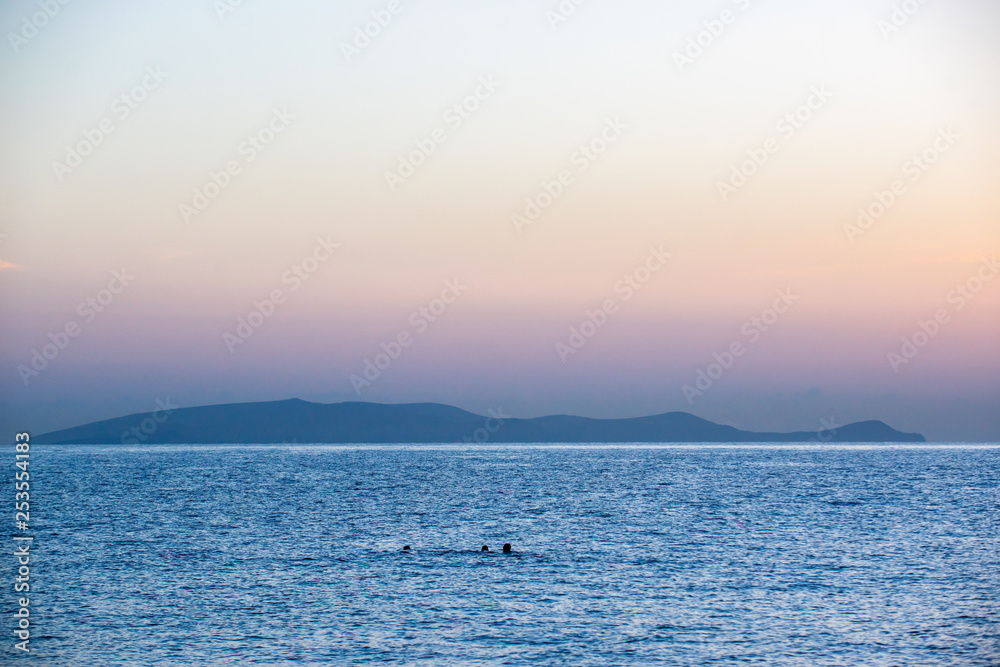 Early summer morning bright sky Beach in Crete