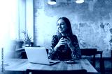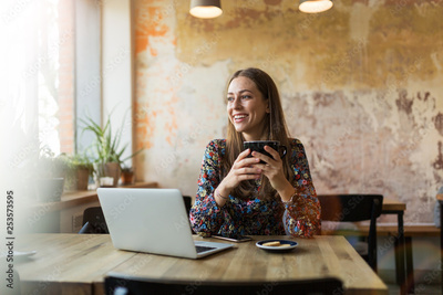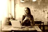 Young woman with laptop in cafe