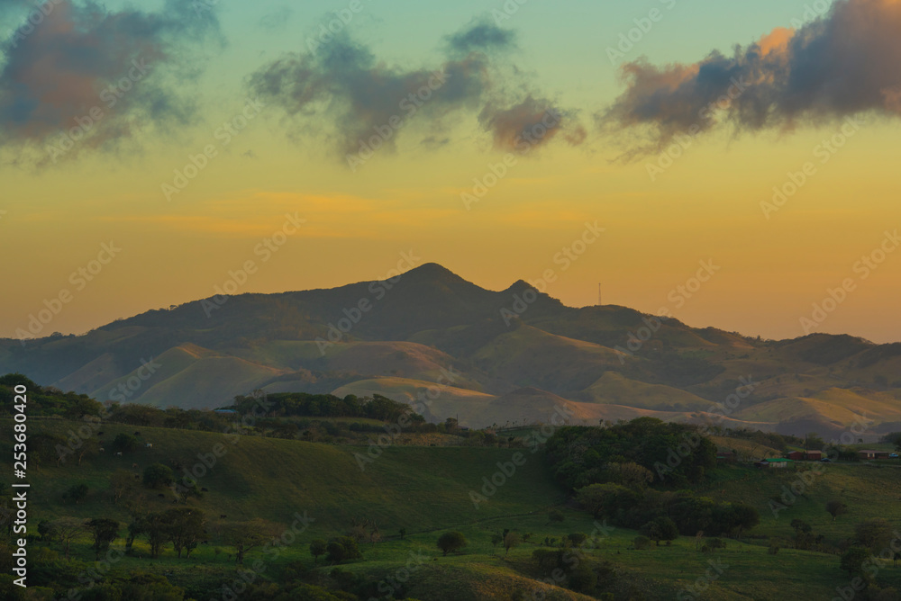 Hermoso atardecer con la cordillera de Tilarán al fondo