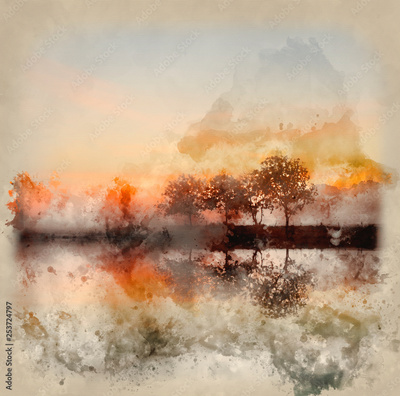 Stunning vibrant Autumn foggy sunrise English countryside landscape image