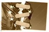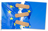 Ripped photo of a frayed European flag - concept image with adhesive bandage - problems and solution concept
