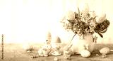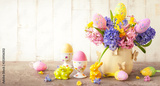 Easter breakfast table with flowers and Easter decor