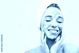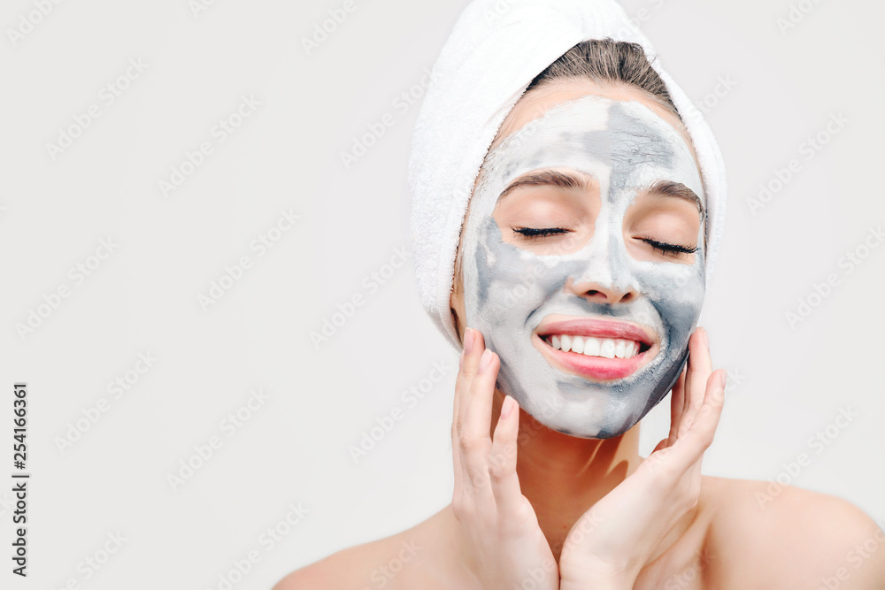Brunette young woman doing cosmetic mask on her face