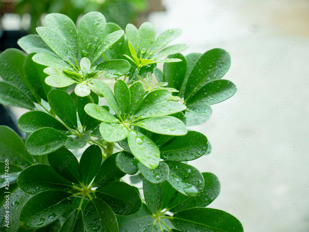 fresh mint leaves on green background