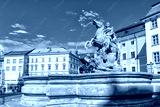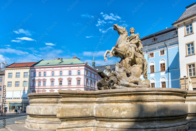 Caesar fountain against the blue sky in Olomouc. Czech Republic
