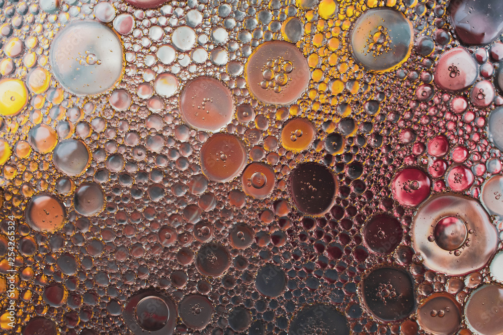 Abstrakcja, tło. Kolorowe bąble, bąbelki - krople oleju w wodzie tworzące abstrakcyjne i ciekawe kszztałty