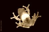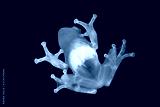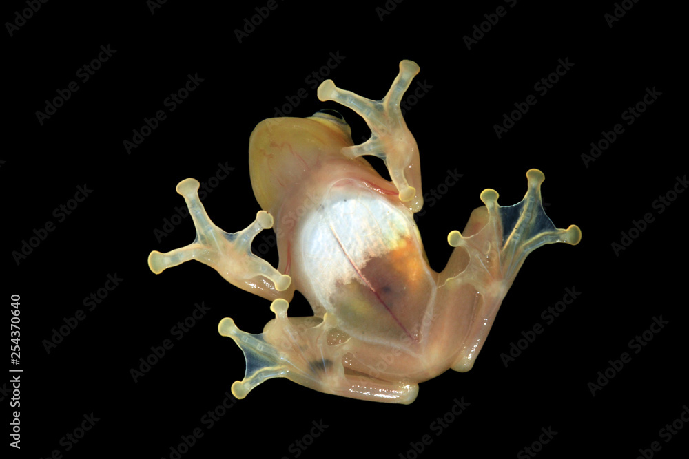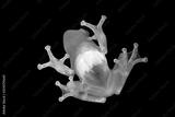Golden tree frog on glass, transparent tree frog, yellow frog