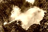 Beautiful view of the big waves crashing at the shore at Porto Moniz, on the north coast of Madeira island