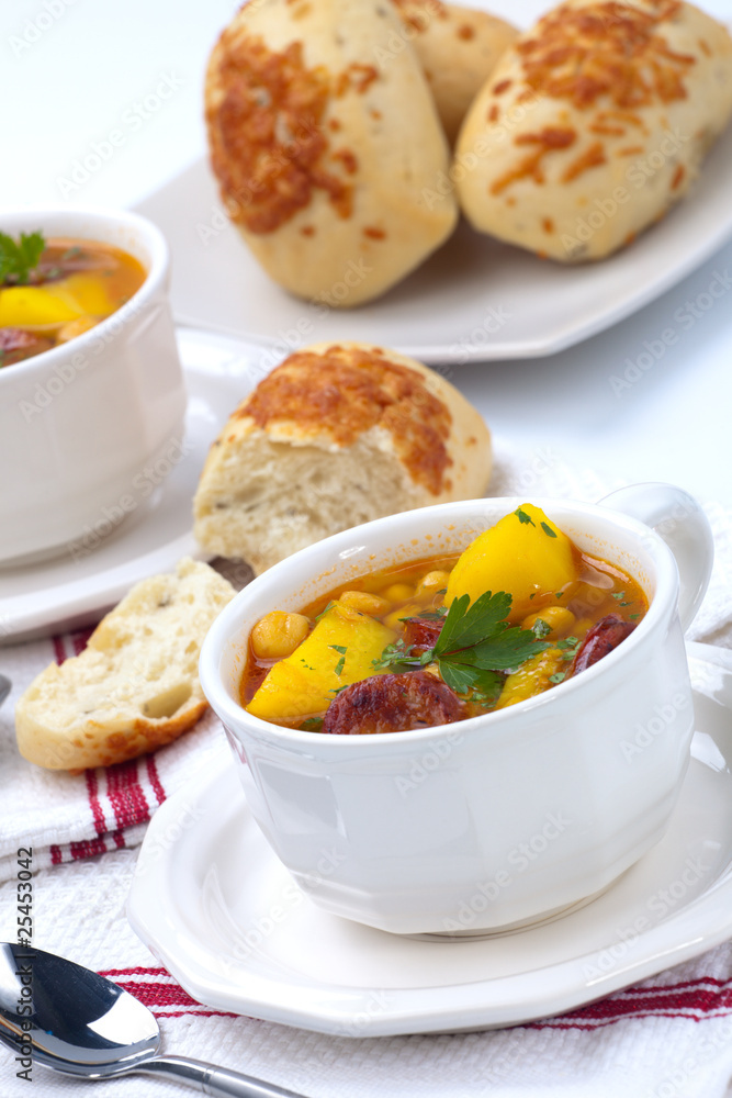 Golden chorizo and chickpea soup