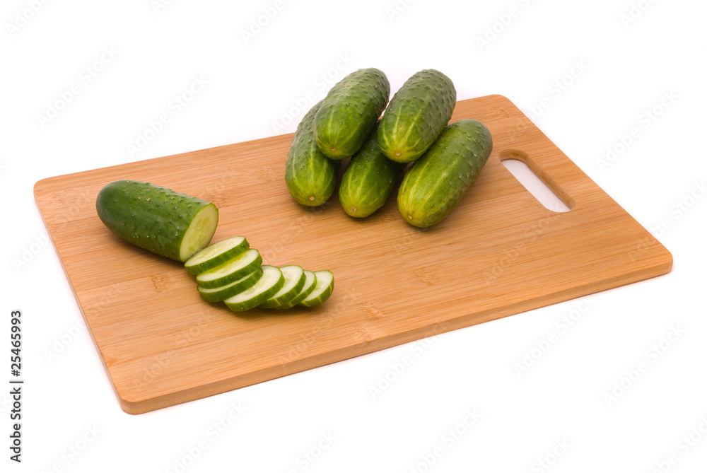 Fresh cucumbers on a chopping board