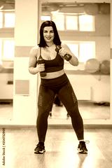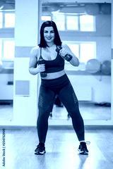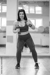Adult woman doing exercises with dumbbells. The concept of sports, a healthy lifestyle, losing weight
