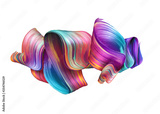 3d render, abstract brush stroke, neon smear, colorful folded ribbon, paint texture, artistic clip art, isolated on white background