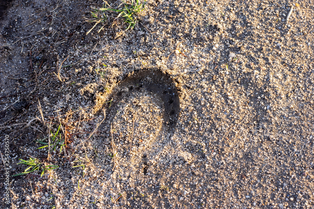 imprint of a horseshoe in wet sand