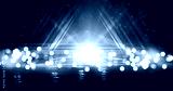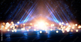 Wet asphalt, reflection of neon lights, a searchlight, smoke. Abstract light in a dark empty street with smoke, smog. Dark background scene of empty street, night view, night city.