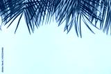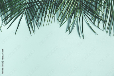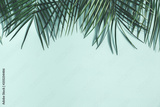 Summer composition. Tropical palm leaves on pastel blue background. Summer concept. Flat lay, top view, copy space