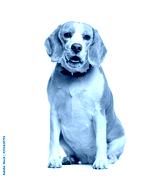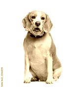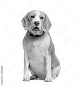 Beagle sitting in front of white background
