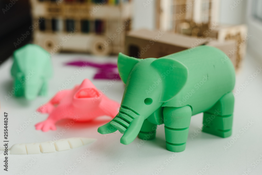 3D figures printed on an elephant, lizard, and snail printer. 3d toys for children