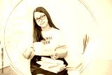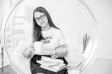 Teen reads a book with glasses. Drinking tea. Concept of education, hobby and study and world book day