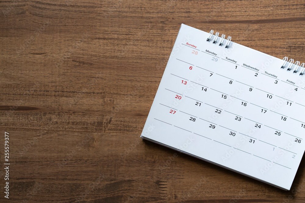 close up of calendar on the table, planning for business meeting or travel planning concept