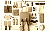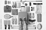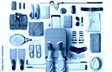 Travel concept with a large suitcase and other accessories