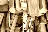 pile of wooden logs, stack of chopped birch firewood