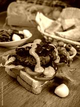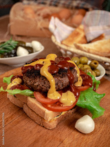 Hot sandwich with beef cutlet, pickles, mozzarella