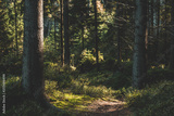 Beautiful Sunset In Sunny Autumn Coniferous Forest