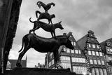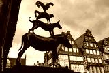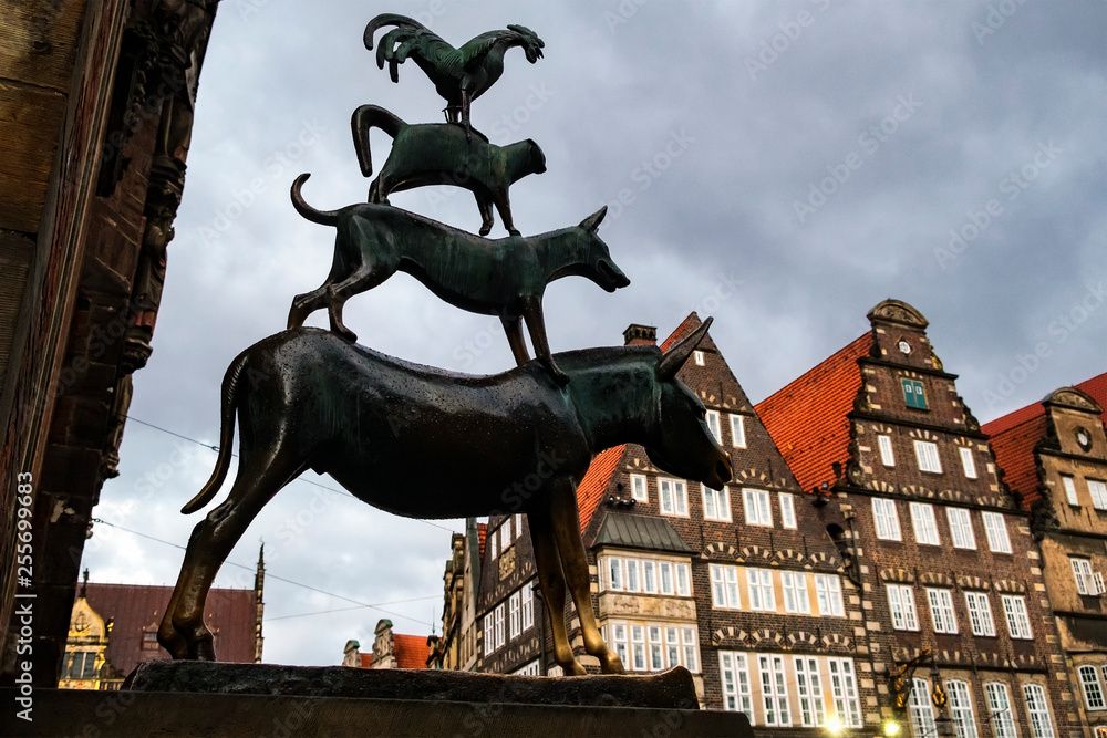 A bronze statue depicting the Bremen Town Musicians in Bremen, Germany. March 2019
