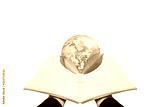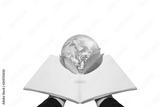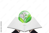 Earth day, Protect the world with environment and Eco-friendly concept. Hand holding opened book with globe and leaves, isolated on white background. Element of this image are furnished by NASA
