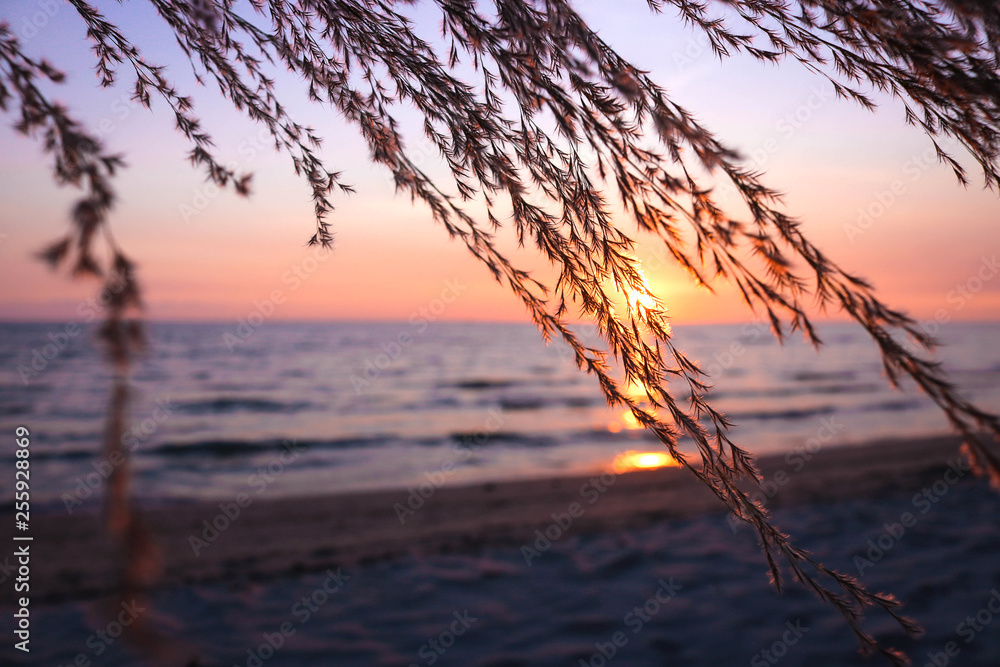 grass flower on the beach at summer sunset time