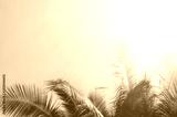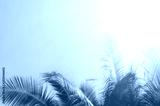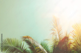 Tropical palm tree with colorful bokeh sun light on sunset sky cloud abstract background.