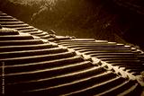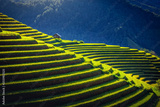 Rice fields on terraced with wooden pavilion at sunrise in Mu Cang Chai, YenBai, Vietnam.