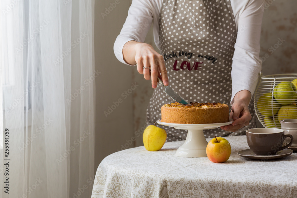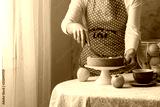 Cutting an apple pie (self portrait)