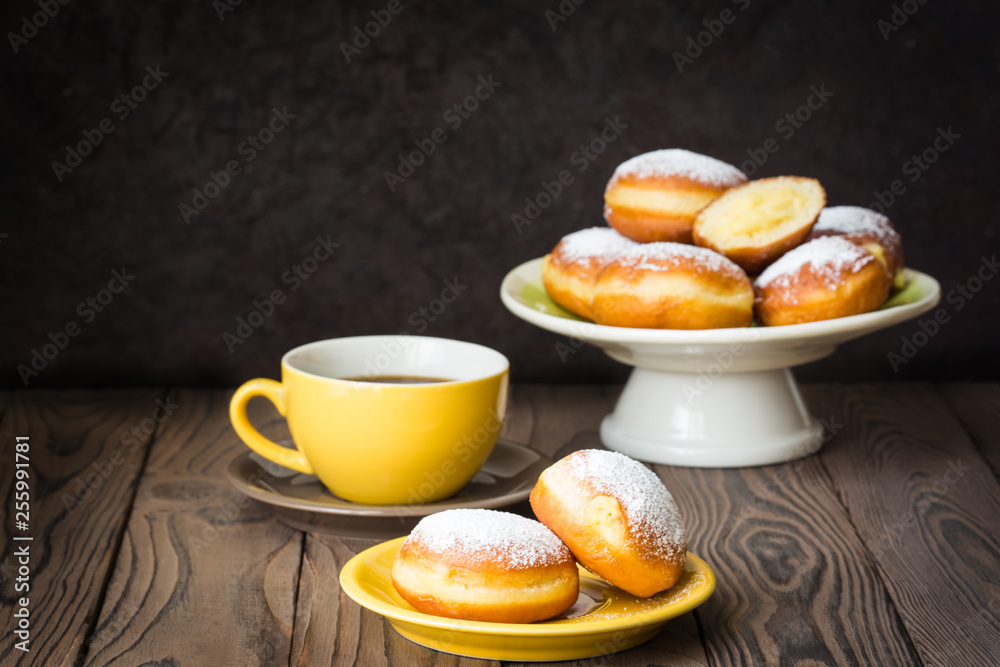 Bombolone - filled sweet yeast dough fried in oil, with a cream. Italian carnival doughnuts.
