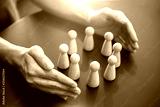 Woman hands defending his team with a gesture of protection, Security and safety in a business team.