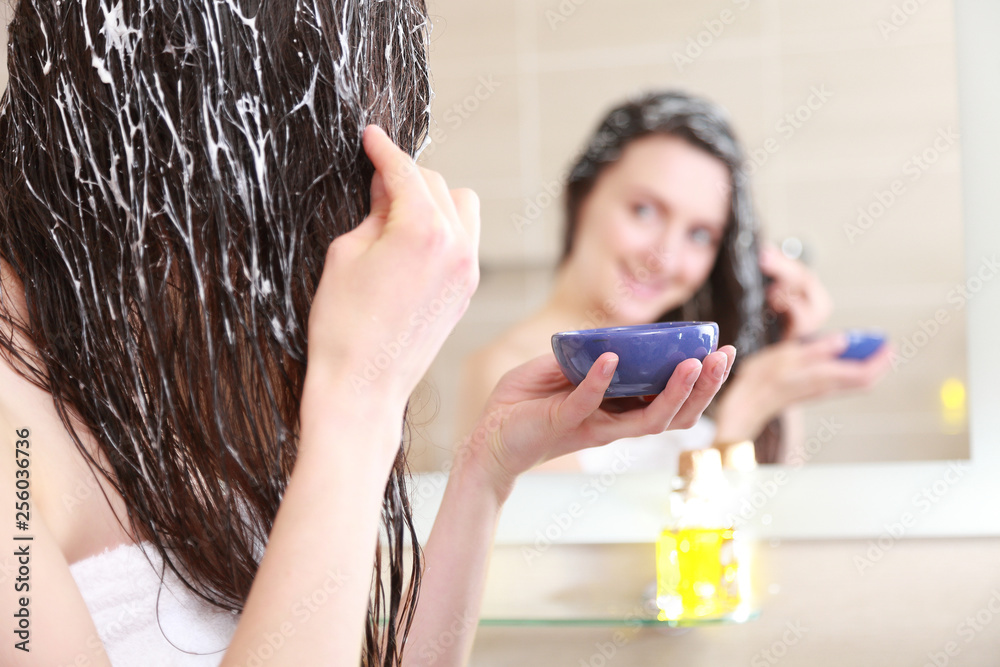Young woman spreading oil mask