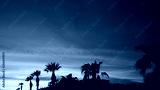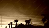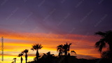Dramatic sunset landscape at Urla, Izmir, Turkey. Beautiful blazing sunset landscape over bright blue sea and orange cloudy sky above it with awesome golden rays of sun light reflection on calm waves.